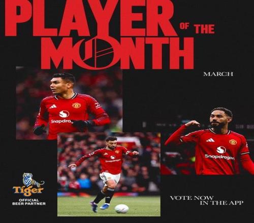 北京时间3月24日,曼联官方公布队内3月最佳球员候选名单,这3名球员为布鲁诺-费尔南德斯、卡塞米罗、库尼亚。