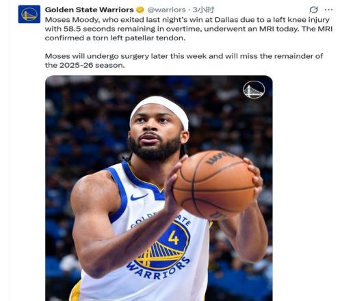 在今天勇士官方公布了穆迪赛季报销的消息并确定他在本周接受手术。